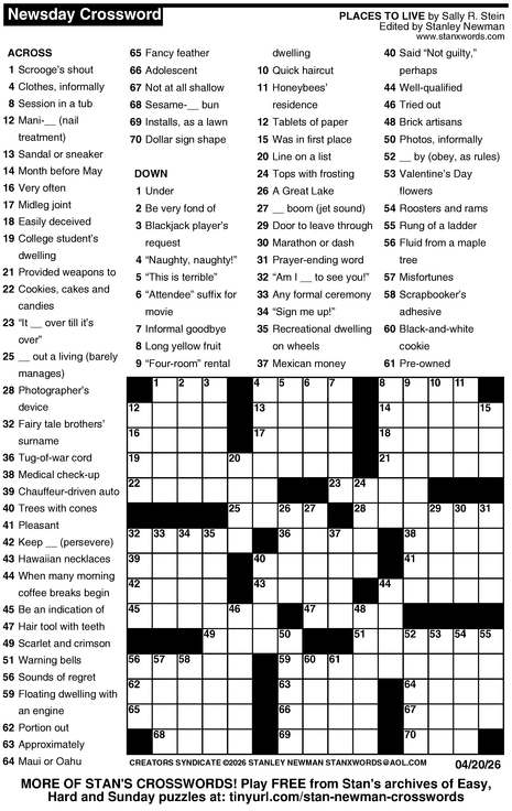 Crossword for 4/20/2026